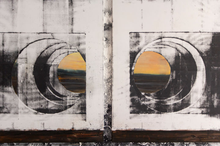 Les nouvelles productions d’Eva Nielsen regorgent de ces panoramas mystérieux, aux passages impénétrables où le réel semble se décomposer pour mieux se reconstruire dans des reliefs sédimentés aux textures sablonneuses, telles des empreintes de temps géologiques. La peinture est alors envahie de ces fines particules de résidus qui se déposent et se dissolvent lentement sur le papier photographique, la toile et le voile. Des traces infimes, patientes et actives, qui font surface et que l’artiste traduit dans des compositions aux couleurs intenses mais fugaces.