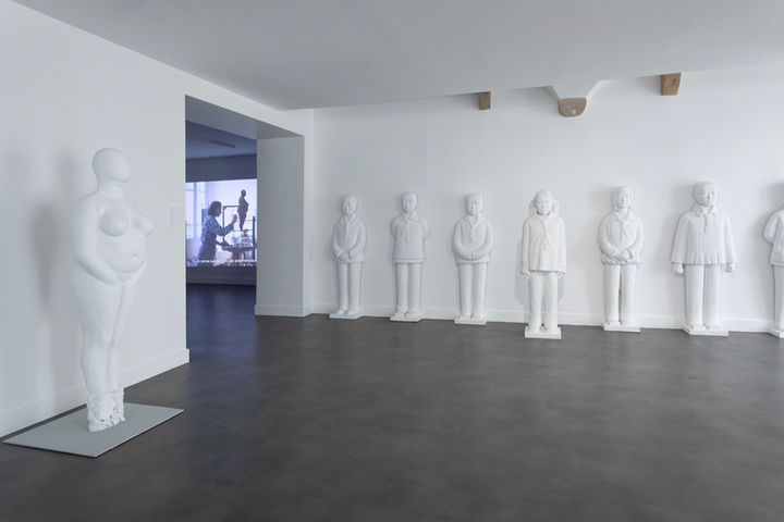 Des sculptures s’y succèdent et évoquent les nombreuses recherches de l’artiste autour des questions de la maladie, de la catharsis, du soin, mais aussi de la maternité comme autant d’expériences de l’altérité. Au blanc, se succède ensuite le noir total, absolu.