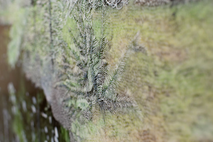 Qu’elle accompagne les mouvements saccadés de sa péniche, traverse les rieux des Hortillonnages à la découverte de jardins flottants ou bien qu’elle vogue au creux des valleuses, l’artiste ne se laisse pas seulement porter à la surface de ces eaux aux apparences trompeuses. Elle s’y fraye des passages, y prélève des sensations, recompose des histoires teintées de matières et de couleurs pour faire émerger des images et des reliefs, comme ces petites pierres lentement gravées par les eaux des ruisseaux.