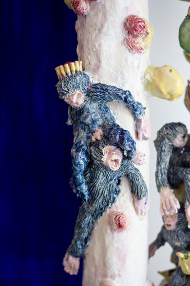 Adoptant une approche artistique subversive, libre et dégagée du conformisme, les œuvres des artistes Natacha Lesueur et du duo Bachelot & Caron s’émancipent de nos représentations ; ils questionnent de manière frontale l’ornementation, la fonction décorative dans l’utilisation de motifs comestibles tout en s’affranchissant des règles classiques, non sans ironie. De l’identité genrée et stéréotypée de Natacha Lesueur aux festins extravagants de Bachelot & Caron, chacun de ces artistes se jouent des symboles, malmènent nos attentes, nos perceptions avec adresse, nous livrant des œuvres libres, surprenantes voire provocatrices.